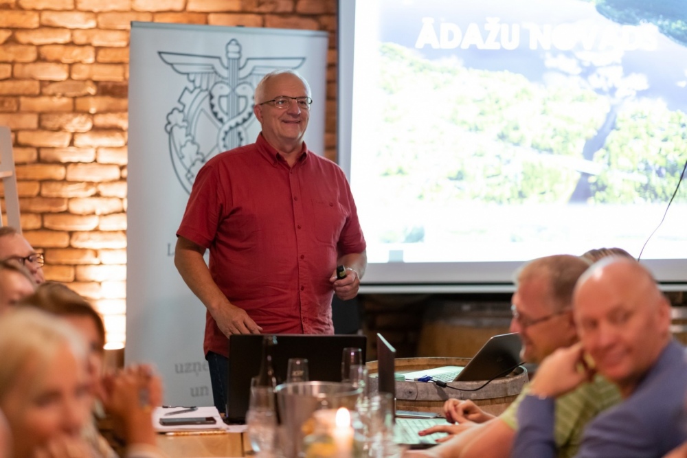 Savukārt viesis – Ādažu uzņēmēju biedrības valdes priekšsēdētājs Uldis Štēbelis, stāstīja par Ādažu novada industriālo attīstību un būtisko iedzīvotāju skaitu pieaugumu, kas palielinājies par aptuveni 3000, līdz ar NATO lēmumu palielināt militārās bāzes Ādažos kapacitāti.