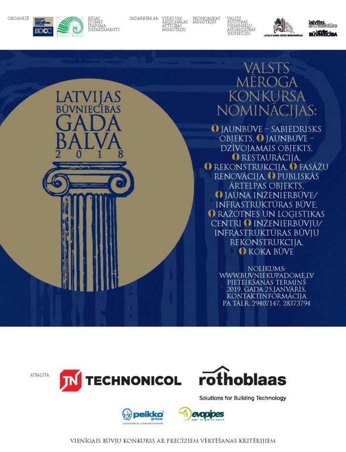 Vairāk par pieteiktajiem objektiem: https://www.buvniekupadome.lv/konkurss/konkurss-latvijas-buvniecibas-gada-balva-2018-pieteikumi/